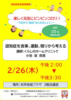 今回は「認知症を食事、運動、眠りから考える」と題して、認知症の予防について